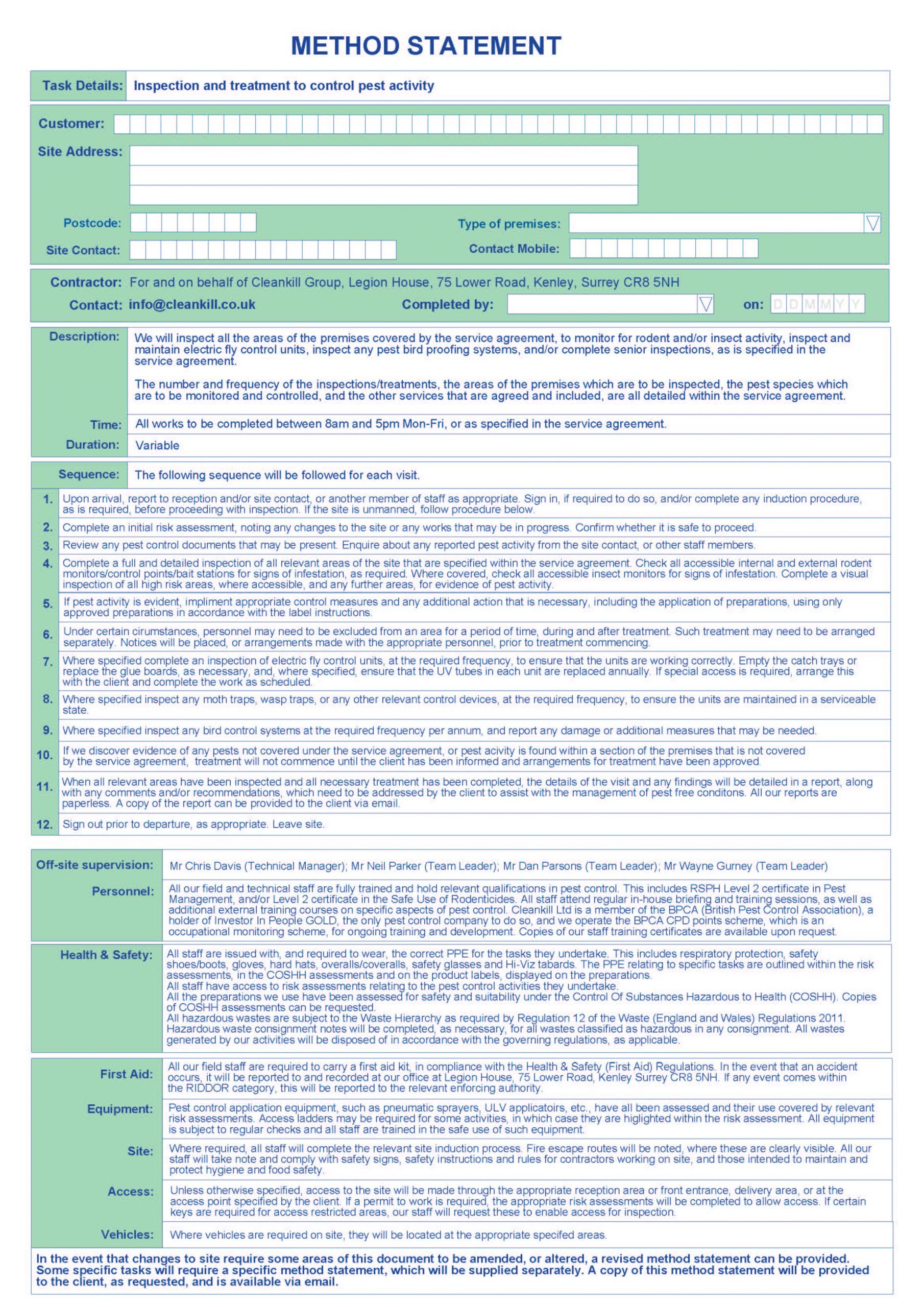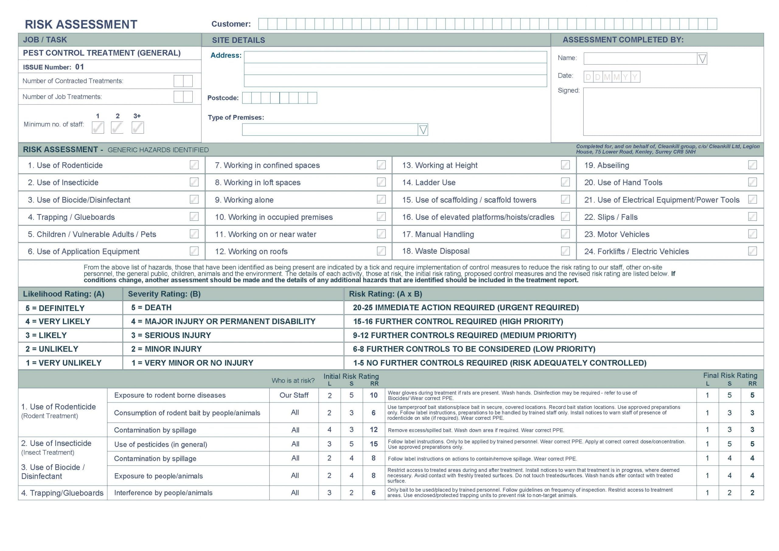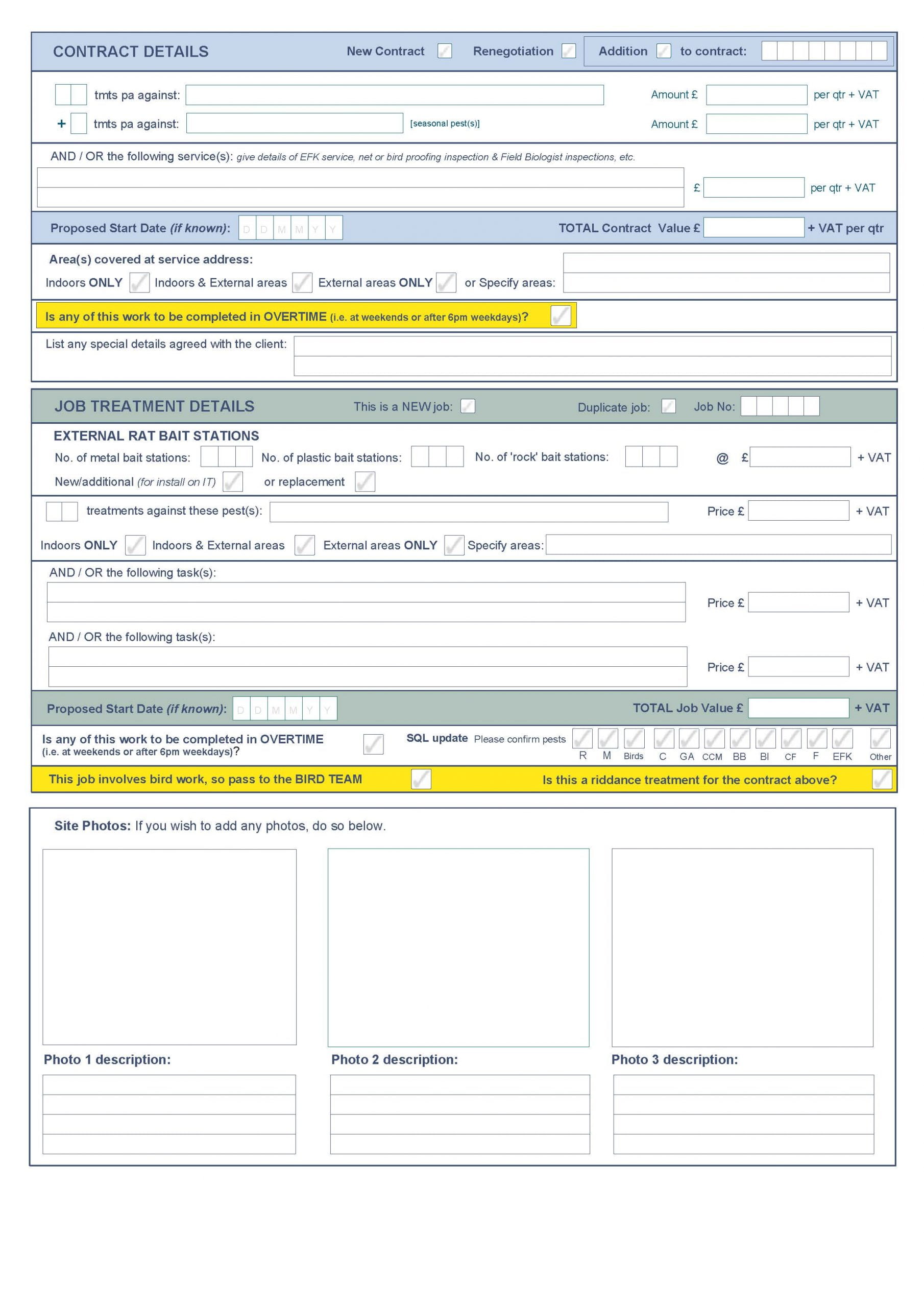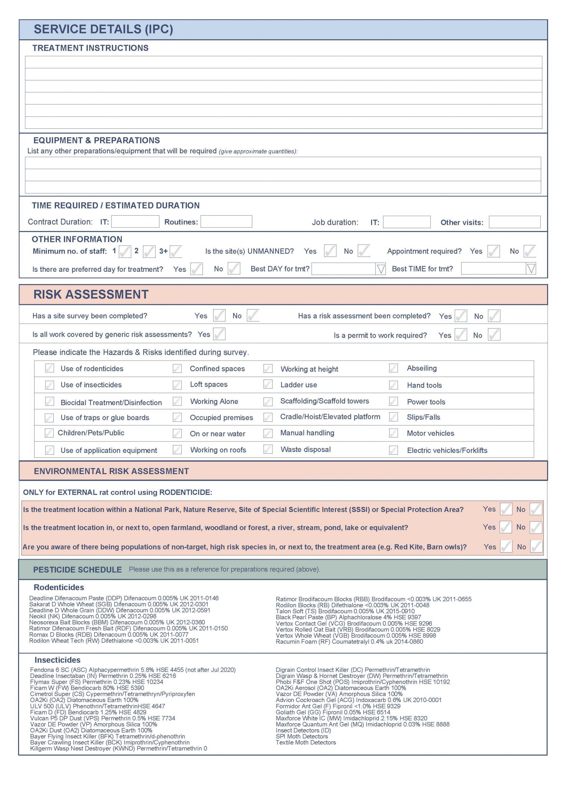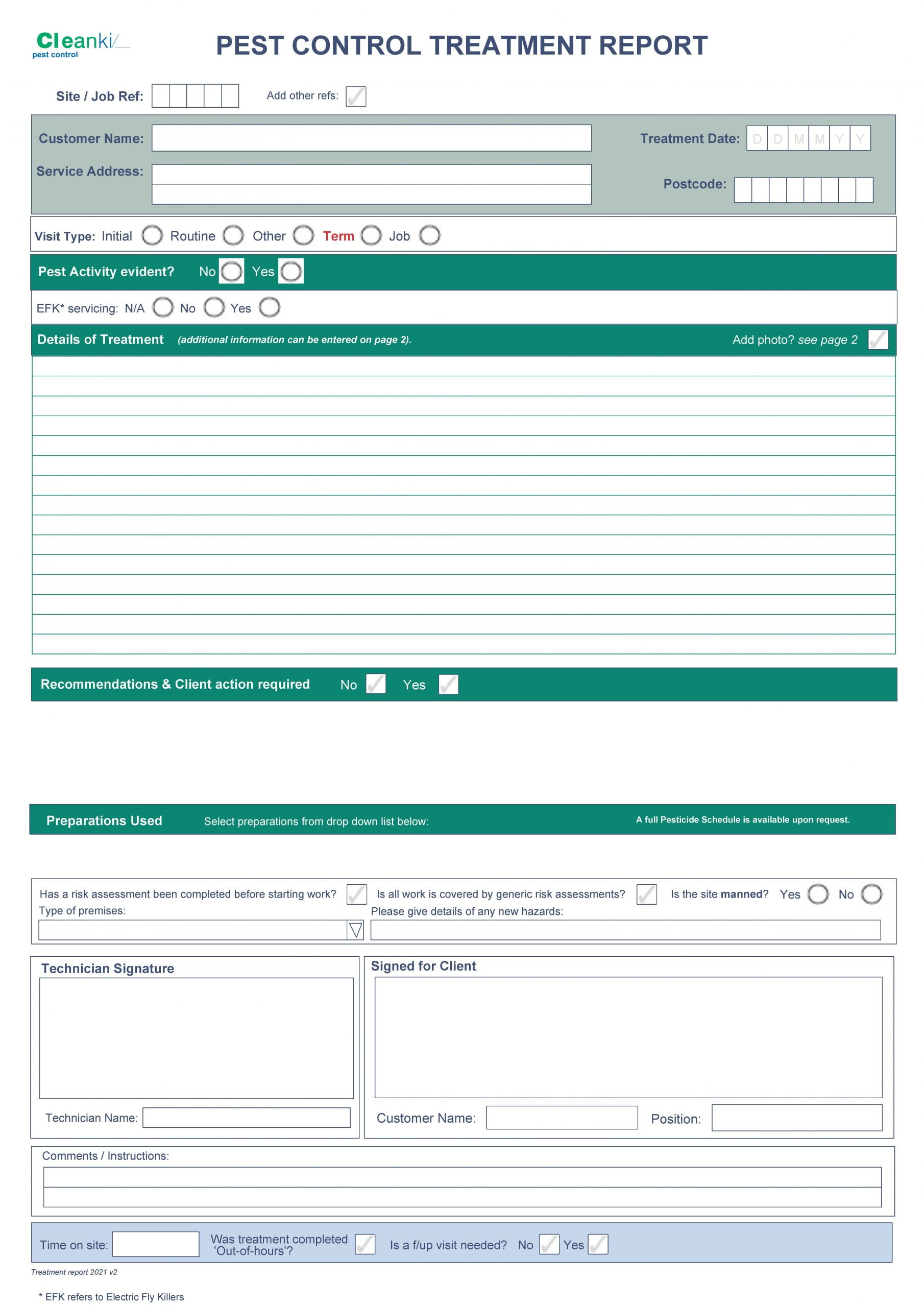 Cleankill now have an active form library and processing many digital forms daily. No more paper and no more data entry in the office. Below is a selection of forms to showcase what data can be captured via our solution.